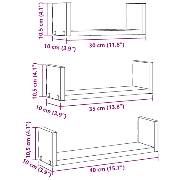 Seinähyllyt 3 kpl artesaani tammi puinen