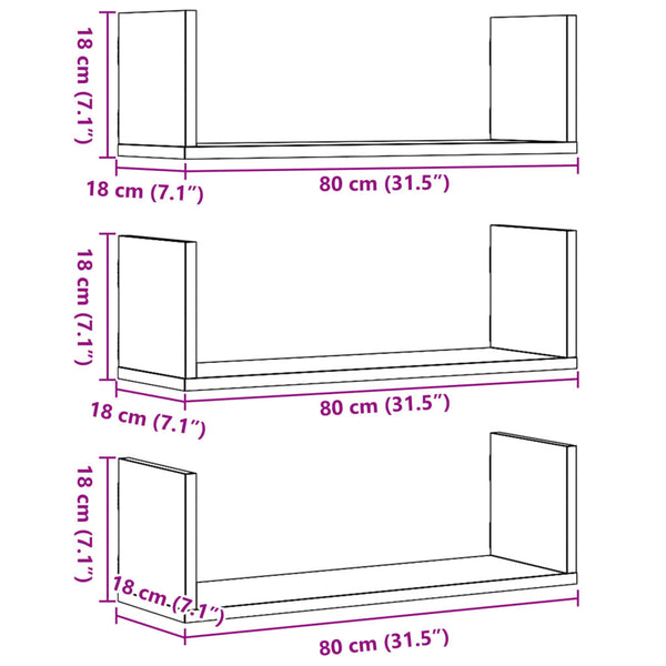 Musta seinähyllyt 80x18x18cm 3 kpl puinen