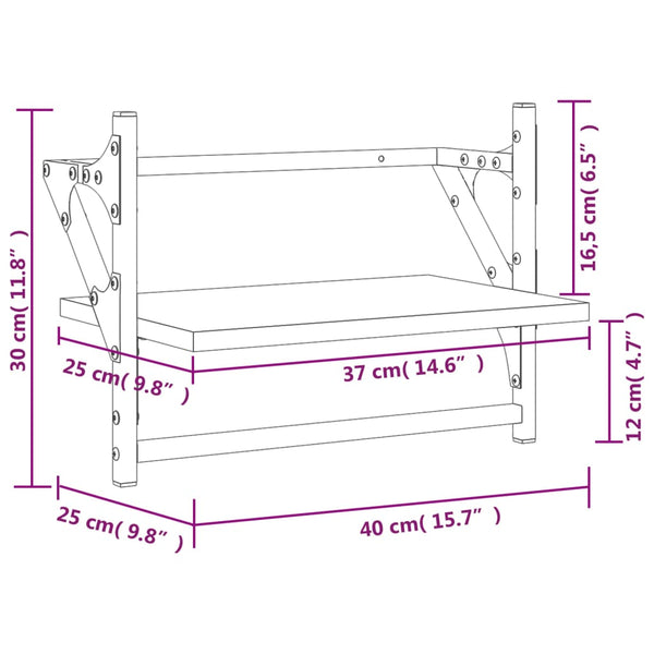 Musta seinähyllyt tangoilla 40x25x30cm 2 kpl