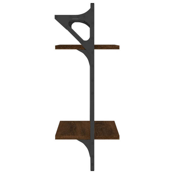 Ruskea tammi seinähyllyt tangoilla 2 tasoa 30x25x65cm 2 kpl