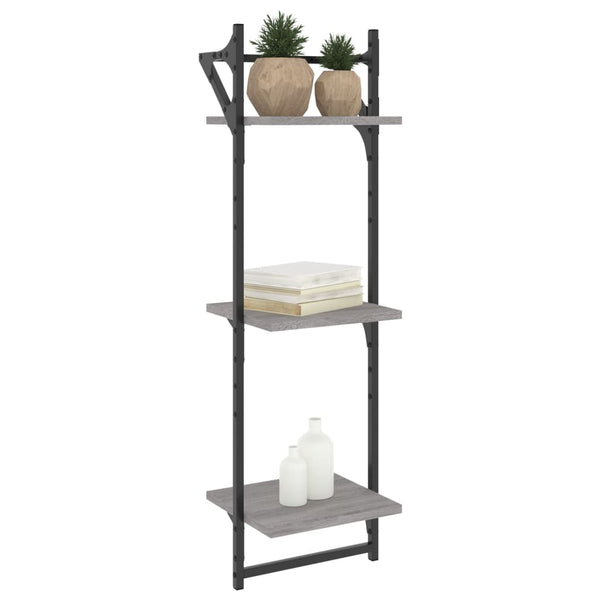 Harmaa seinähyllyt tangoilla 3 tasoa 30x25x100cm 2 kpl sonoma