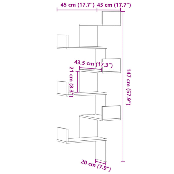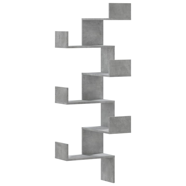 Betoninharmaa seinäkulmahylly 45x45x147cm puinen