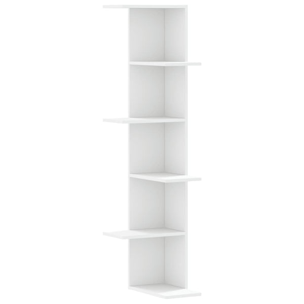 Valkoinen seinäkulmahylly 36,5x36,5x140cm puinen
