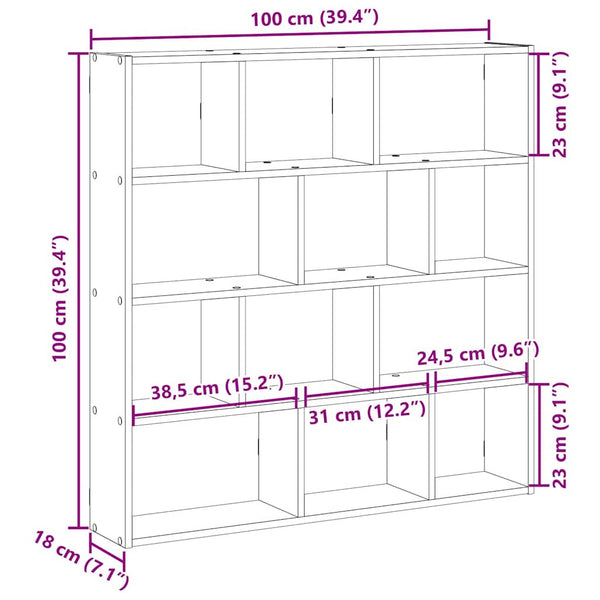 Seinäkuutiohylly 12 lokeroa savustettua tammipuuta