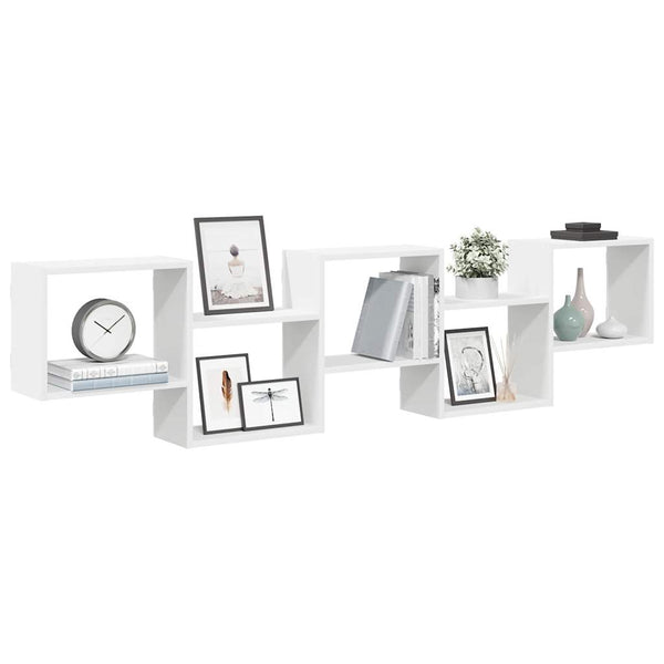 Valkoinen seinäkuutiohylly 5 lokeroa puinen