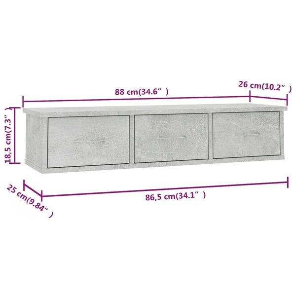 Betoninharmaa seinälaatikkohylly 88x26x18,5cm puinen