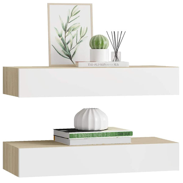 Tammi ja valkoinen seinälaatikkohyllyt 60x23,5x10cm 2 kpl mdf