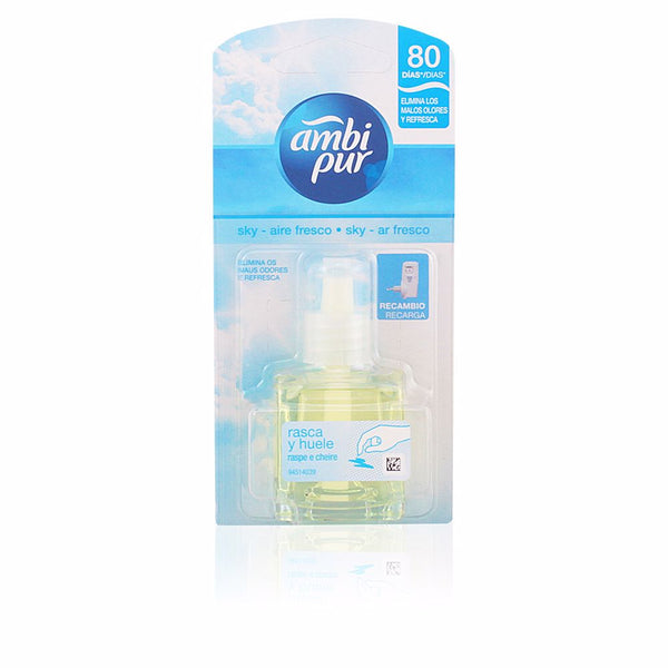 AMBI PUR Electrico ambientador täyttöpakkaus #sky tekee nopeasti lopun epämiellyttävistä hajuista ja korvaa ne raikkaalla ja miellyttävällä tuoksulla. Nauti puhtaasta ilmasta ja miellyttävästä tuoksusta kotona tai toimistossa.