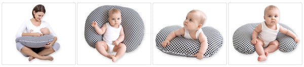Monikäyttöinen imetystyyny palvelee myös vauvan kasvaessa. Sen kaarevaa muotoa voi hyödyntää tukena istumaan opettelevalle lapselle. Lisäksi tyyny sopii vatsallaanoloon eli niin sanottuun tummy time -leikkiin, joka vahvistaa vauvan niskaa, selkää ja hartioita.