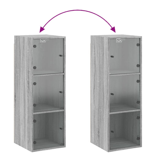 Harmaa seinäkaappi 35x37x100cm lasiovilla sonoma