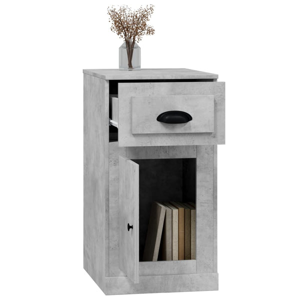 Betoninharmaa sivukaappi laatikolla 40x50x75cm puinen