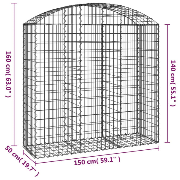 Galvanoitu kaareva kivikori 150x50x140/160cm rauta