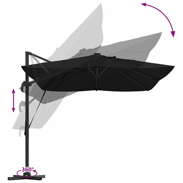 - Säädettävät ominaisuudet: 360° pyörimismekanismin avulla voit helposti seurata aurinkoa koko päivän. Kallistusominaisuus antaa sinulle oikean kulman varjoon silloin kun sitä tarvitset. Tämä asettelu kattaa kaikki ulkovarjostustarpeet.