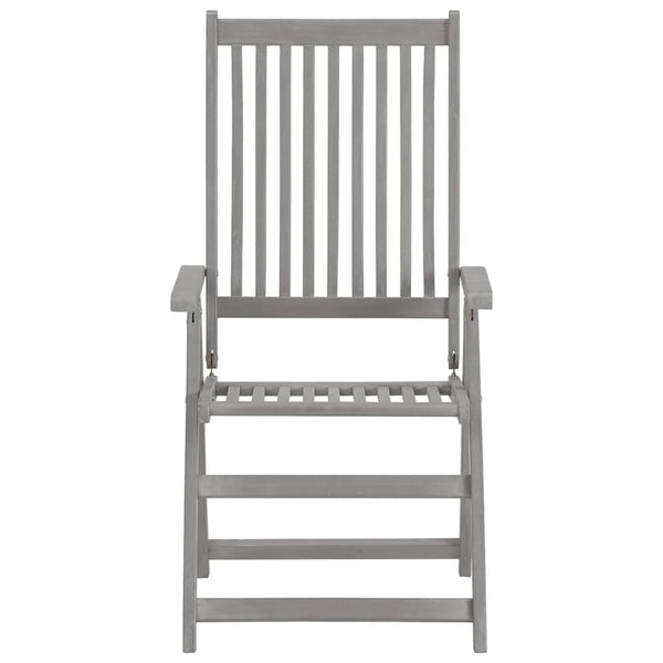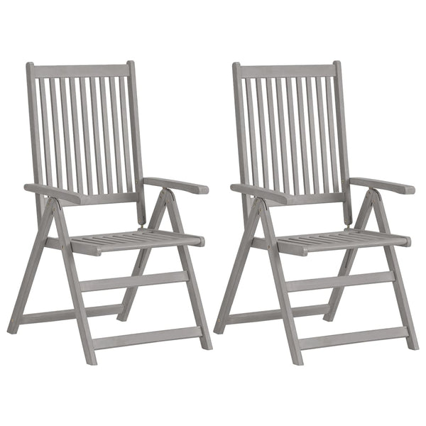 Nämä terassituolit on valmistettu harmaalla kuultomaalilla viimeistellystä täydestä akasiapuusta, joka on tiheäsyinen kovapuu. Nämä kauniisti muotoillut ulkotuolit ovat vakaita, kestäviä ja huomiota herättäviä. Tuolin selkänoja voidaan säätää viiteen eri asentoon, joten löydät aina kaikkein mukavimman asennon. Mukana tulevat tyynyt tarjoavat lisämukavuutta oleskelun tai ruokailun ajaksi. Jokaisessa tyynyssä on elastinen nauha ja kaksi naruparia, joiden avulla se voidaan kiinnittää tiukasti tuoleihin. Nämä tuolit sopivat täydellisesti ruokailuun perheesi kesken tai vain ulkotiloissa säästä nauttimiseen.