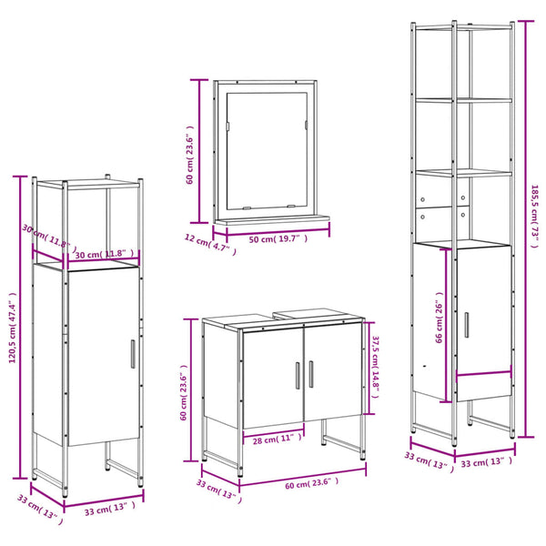 Harmaa kylpyhuoneen kaappisarja 4-osainen sonoma puinen