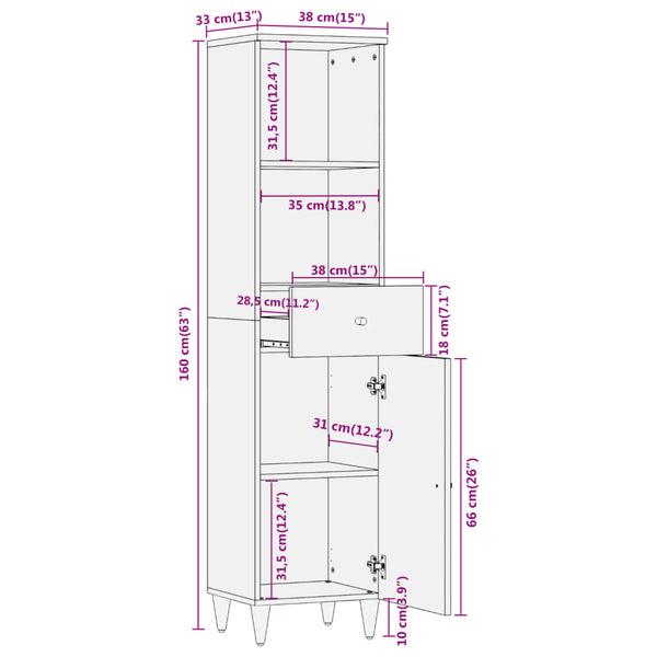 - Mitat: 38 x 33 x 160 cm (L x S x K)