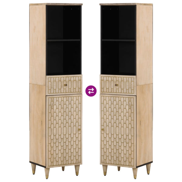 - Täysi mangopuu: Täysi mangopuu on luja trooppinen lehtipuu, josta valmistetaan tukevia kalusteita. Kauniit puunsyyt tekevät jokaisesta kalusteesta hieman erilaisen kuin seuraavasta. Täydestä mangopuusta valmistettu kylpyhuoneen säilytyskaappi on kestävä ja vakaa.