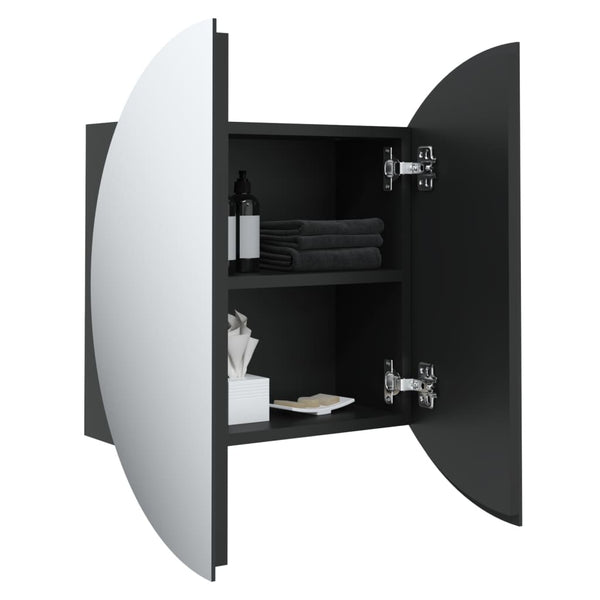 Musta kylpyhuoneen kaappi ja pyöreä peili led-valot 40x40x17,5