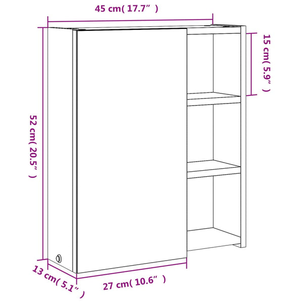 Vaalea tammi kylpyhuoneen peilikaappi led-valolla 45x13x52cm