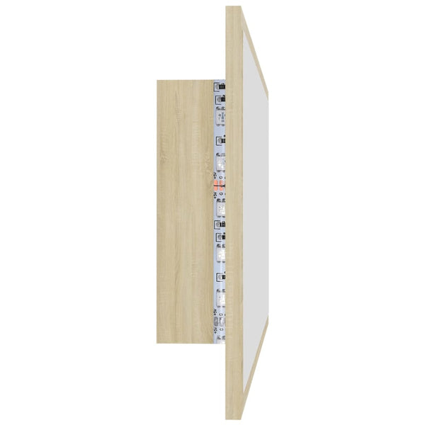 Kestävä ja vakaa seinäpeili on valmistettu teknisestä puusta ja akryylistä. Tässä peilissä on RGB-valo, joten LED-valojen väriä voidaan vaihdella. Peili on helppo puhdistaa kostealla liinalla.