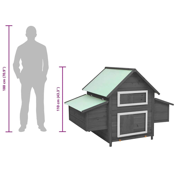 Harmaa ja valkoinen kanakoppi 150x96x110cm kuusi