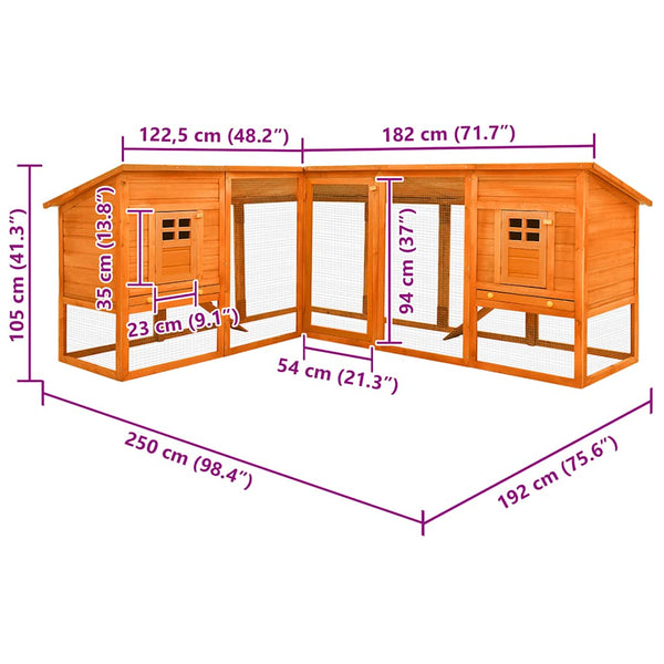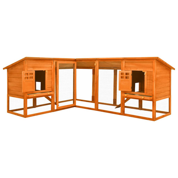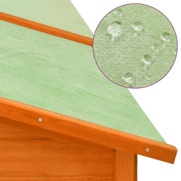 Kaninhäkissä on kattava suunnittelu, sisältäen kaksi taloa ja erittäin suuren aitauksen galvanoidulla teräsverkolla, jotta voit pitää lemmikkejäsi silmällä ja estää odottamattomat onnettomuudet. Kanien silmällä pitämisen helpottamisen lisäksi aitaus tarjoaa niille runsaasti raikasta ilmaa. Lemmikkiaitauksen runko on täyttä kuusipuuta, joten se on vakaa ja kestävä. Kallistetuissa katoissa on vedenpitävä kangas, joka auttaa pitämään sateen loitolla. Talot tarjoavat täydellisen nukkumispaikan. Liukumaton ramppi johtaa maasta ylemmälle tasolle.