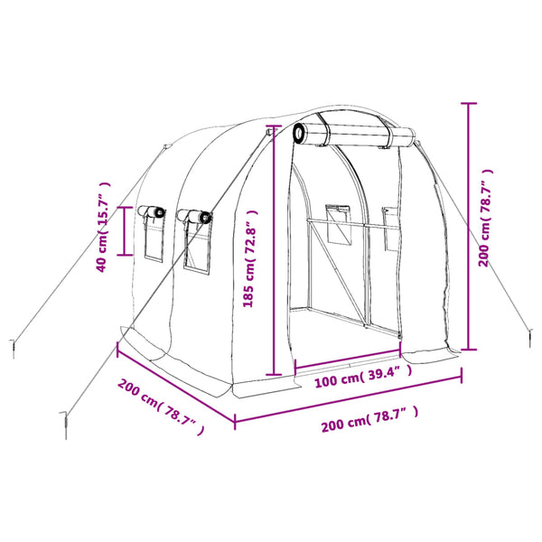 Vihreä kasvihuone teräsrungolla 4 m² 2x2x2 m