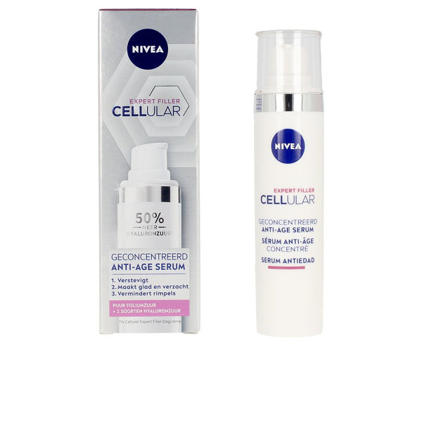 Nivea Cellular Filler Anti-Aging Seerumi 30 ml on tehokas ihonhoitotuote, joka auttaa vähentämään ryppyjä ja kiinteyttämään ihoa. Tämä seerumi sisältää hyaluronihappoa ja magnoliauutetta, jotka edistävät ihon uudistumista ja parantavat ihon elastisuutta. Kevyt koostumus imeytyy nopeasti, tehden ihosta sileämmän ja nuorekkaamman näköisen. Seerumi sopii kaikille ihotyypeille ja sitä käytetään päivittäin ennen kosteusvoidetta.