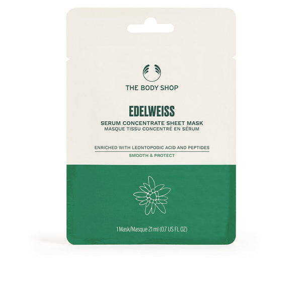 The Body Shop Edelweiss Seerumitiiviste-Kangasnaamio on rikastettu edelweiss-uutteella, joka tunnetaan antioksidanttisista ominaisuuksistaan. Tämä kangasnaamio ravitsee ihoa syvältä ja auttaa vähentämään hienoja juonteita. Kertakäyttöinen naamio tekee ihosta sileämmän ja kimmoisamman jo ensimmäisen käyttökerran jälkeen. Sopii kaikille ihotyypeille.