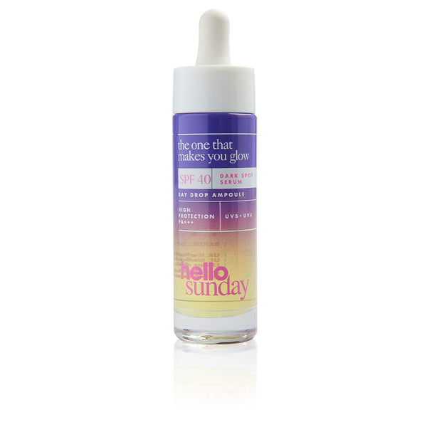 Hello Sunday The One That Makes You Glow -seerumi on tehokas ratkaisu tummentuneiden läikkien käsittelyyn. Se sisältää SPF40-suojan, joka auttaa torjumaan UV-säteitä ja ehkäisee uusien pigmenttiläikkien muodostumista. Tämä 30 ml:n seerumi heleyttää ihoa ja edistää sen tasaisempaa sävyä, parantaen samalla ihon kimmoisuutta ja tekstuuria. Se on kehitetty suojaamaan ja hoitamaan ihoa ympäri vuoden.