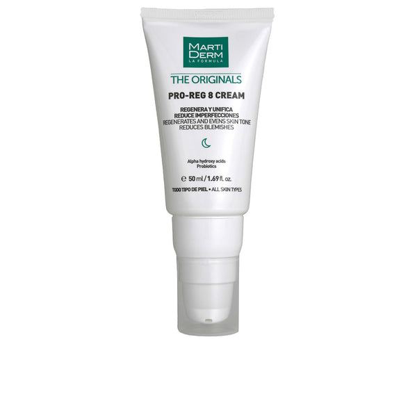 Martiderm The Originals Pro-Reg 8 Voide 50 ml on ihoa uudistava ja kosteuttava kasvovoide. Sen koostumus sisältää 8 erilaista proteiinia ja peptidejä, jotka auttavat stimuloimaan ihon kollageenin tuotantoa, edistäen näin ihon kimmoisuutta ja vähentäen ikääntymisen merkkejä. Voide sopii kaikille ihotyypeille ja on erityisen tehokas kuivan ja elottoman ihon elvyttämisessä. Se imeytyy nopeasti eikä jätä ihoa rasvaisen tuntuiseksi.