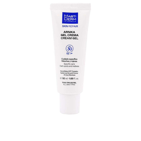 Martiderm Arnika geelivoide spf30 50 ml on suunniteltu ihon muutosten ennaltaehkäisyyn ja hoitoon ennen ja jälkeen toimenpiteiden. Se parantaa ihon ulkonäköä ja auttaa estämään tulehdusjälkeistä hyperpigmentaatiota sen UVA/UVB-suodattimien ansiosta. Lisäksi Arnika Gel Cream SPF kohdistaa ruhjeista ja arpia johtuvia läiskiä. Sen aurinkosuoja tarjoaa suojaa tulevaa pigmentaatiota vastaan samalla kun edistää nopeaa parantumista värissä ja ulkonäössä kärsivällä alueella.