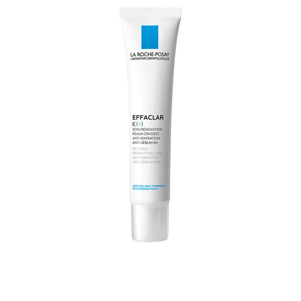 La Roche-Posayn tutkimusosasto on kehittänyt Effaclar K+:n, dermatologisen kaavan, joka on suunniteltu erityisesti aikuisen ihon aknesta kärsiville. Se toimii ihon uudistajana, antioksidanttina ja talineritystä säätelevänä tuotteena 8 tunnin ajan. Tämä hoito puhdistaa ja puhdistaa tehokkaasti ihon, hienojakoista sen tekstuuria samalla kun se vähentää huokosten, mustapäiden ja ylimääräisen kiillon ulkonäköä.