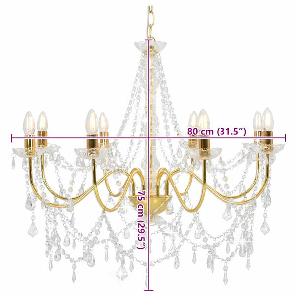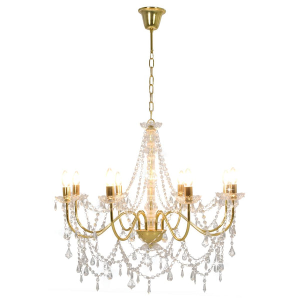 Kulta kattokruunu helmillä 8 x e14 polttimot