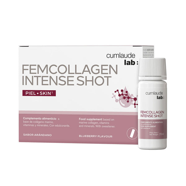 CUMLAUDE LAB:n Femcollagen Intense Shot Vials 7 U on nestemäinen ravintolisä, joka on suunniteltu edistämään ihon terveyttä. Tämä tuote yhdistää hydrolysoitua kollageenia, acerolaa, ruusunmarjaa, resveratrolia sekä olennaisia vitamiineja ja mineraaleja. Sen tavoitteena on tukea ihon kimmoisuutta vahvistamalla sitä ikääntymisen ja ympäristötekijöiden aiheuttamalta vaurioilta. Merellinen kollageeni tyyppi I aktivoi tehokkaasti ihosoluja, tukee luuston terveyttä ja edistää uuden kollageenin muodostumista. Kalasta peräisin oleva kollageeni tarjoaa erinomaisen biologisen hyödynnettävyyden ja imeytymisen, mikä helpottaa sen sulatusta ja jakautumista ihoon.