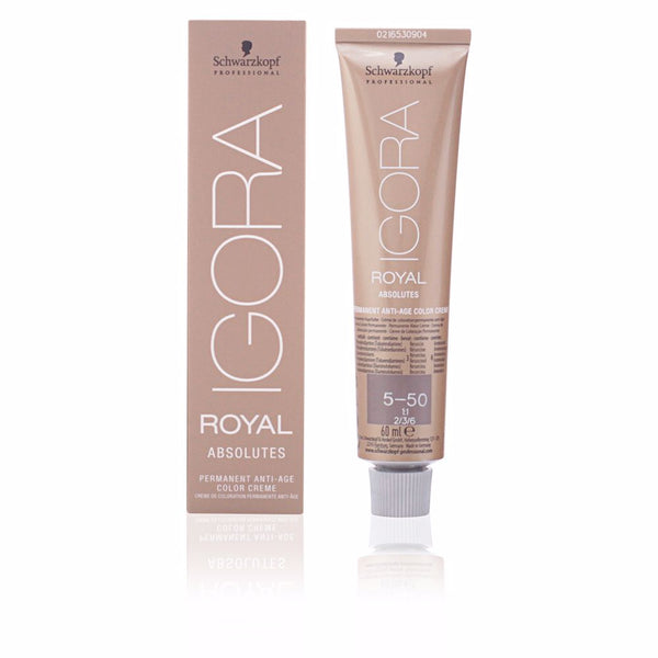 Schwarzkopf Igora Royal Absolutes #5-50 on pysyvä hiusvärivoide, joka on suunniteltu erityisesti kypsiä hiuksia varten. Tämä hiusvärisarja on kehitetty vastaamaan ikääntyvien hiusten tarpeisiin, tarjoten valikoiman elegantteja sävyjä, jotka takaavat poikkeukselliset tulokset samalla kun parantavat hiusten laatua. Nämä värit tarjoavat täyden (100%) harmaiden hiusten peiton ja tasoittavat hiuksen pintaa, mikä johtaa lisääntyneeseen kiiltoon ja pehmeyteen. Tärkeimmät edut sisältävät jopa 3 sävyn vaalennuskapasiteetin, täyden harmaiden hiusten peiton, parannetun hiustenhoidon Pro-Age Complexin avulla (joka on rikastettu Siliaminilla ja kollageenilla), sekä matala hajuteknologian miellyttävää värjäyskokemusta varten.
