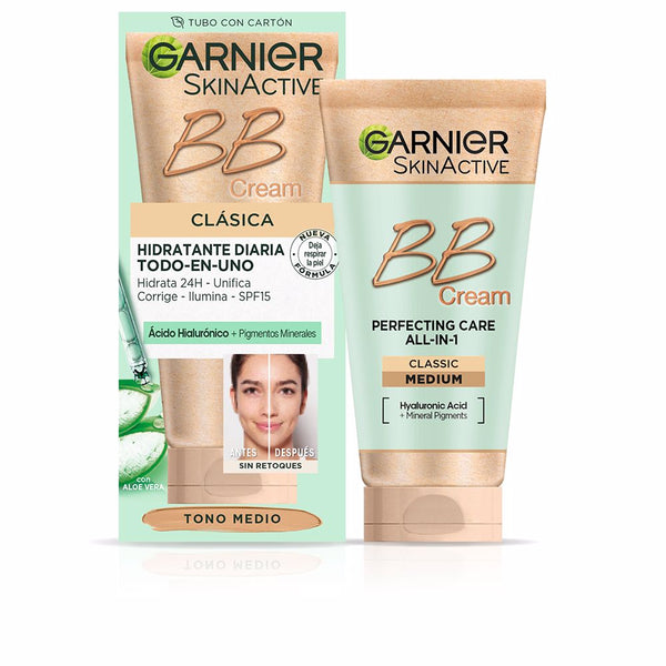 Garnier Skin Naturals BB Cream Classic tarjoaa sävytetyn kosteusvoiteen, joka tehostaa ihon sävyä. Tämä monipuolinen voide on suunniteltu antamaan ihollesi virheettömän ulkonäön samalla pitkäaikaisen kosteutuksen tarjoten. Yhdellä levityksellä voit nauttia ihonhoitorutiinisi olennaisista hyödyistä. Sen monipuolinen koostumus saavuttaa seuraavat:Hydraatio