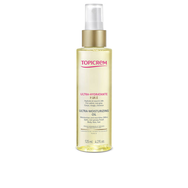 Haluatko tarjota ihollesi ja hiuksillesi syvää kosteutta ja helpotusta? TOPICREM UH ultra-kosteuttava öljy kietoo herkän ihon täydelliseen helpotukseen. Tämä tuote kosteuttaa ihoa ja hiuksia jopa 24 tunnin ajan. Se tarjoaa välitöntä rauhoittavaa vaikutusta kuivalle ja herkälle iholle. Saat satiinimaisen lopputuloksen, eikä se jätä rasvaista tunnetta eikä tuki ihohuokosia.
