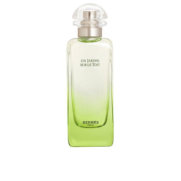 Parfums-Jardins -sarja yhdistää tietyn paikan hengen, inspiraation tuoksuvalmistajalta sekä Hermèsin vuosittain valitseman teeman, joka esittelee sen tarjontaa. Tämä tuoksumatka kannustaa juhlimaan ja jakamaan kokemuksia samalla sytyttäen halun uusiutumiseen, mielikuvitukseen ja pakoon. "Juhlistava puutarha, vapaamielinen ja valaistu." Jean-Claude Ellena Un jardin sur le toit kertoo vilkkaan ja leikkisän tarinan tarkoin varjellusta puutarhasta, joka sijaitsee Pariisin keskustassa. Tämä korkealla sijaitseva vihreä keidas on sijoitettu Hermèsin rakennuksen katolle Faubourg Saint-Honorélla, missä omenapuu, päärynäpuu ja magnolia kukoistavat muiden villiyrttien keskellä, luoden tuoksun, joka on sekä kirkas että iloinen, täynnä elinvoimaa.Ominaisuudet ja mitat: