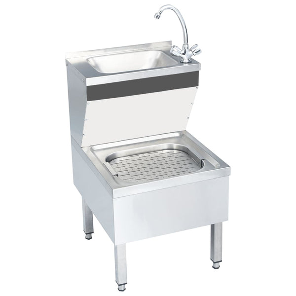 Kahden altaan ansiosta voit pestä kädet ylemmän altaan yllä ja vaatteet alemmassa altaassa. Pesuallas on valmistettu kestävästä ruostumattomasta teräksestä ja se on helppo puhdistaa nopeasti. Käsipesuallas on ihanteellinen ravintoloihin, ruokaloihin, työpajoihin, puutarhavajoihin ja sitä voidaan käyttää myös ulkona.