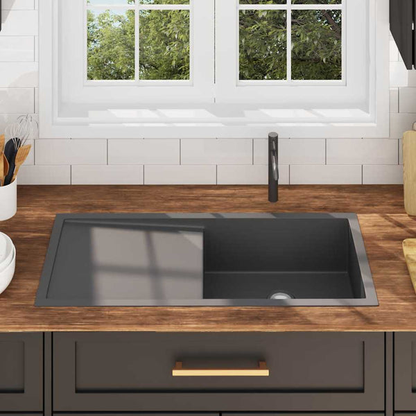 Nauti tiskialtaan puhtaan nykyaikaisesta muotoilusta. Allas sileän satiinisella viimeistelyllä ja kuivaustasolla huokuu klassista ja hienostunutta viehätysvoimaa, mikä sopii minkä tahansa keittiön sisustukseen!