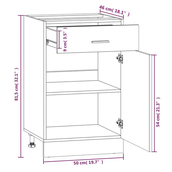 Harmaa alakaappi laatikolla 50x46x81,5cm puinen