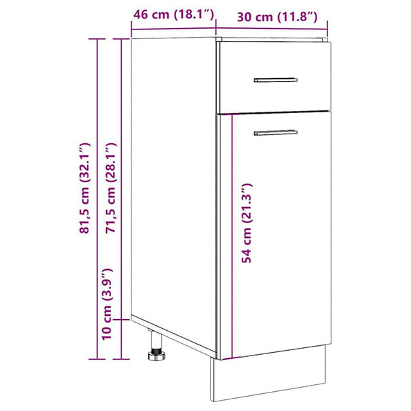 Käsityöläinen tammi alakaappi laatikolla 30x46x81,5cm