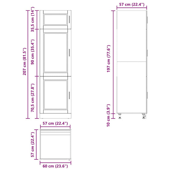 - Kokonaismitat: 60 x 57 x 207 cm (L x S x K)