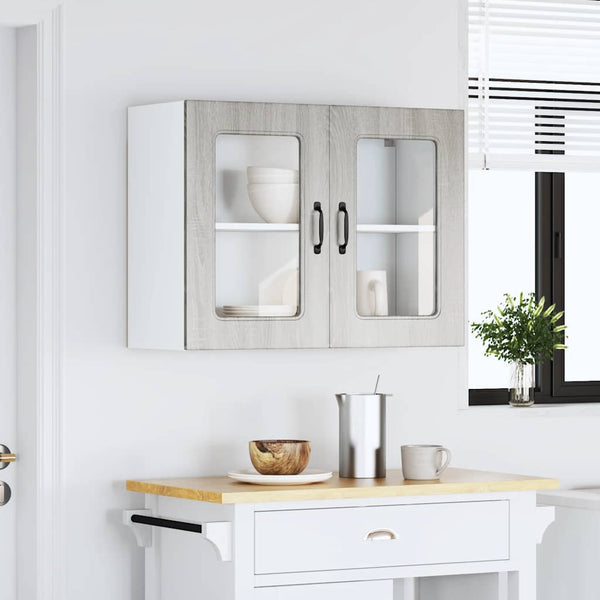 Harmaa keittiön seinäkaappi lasiovella kalmar sonoma