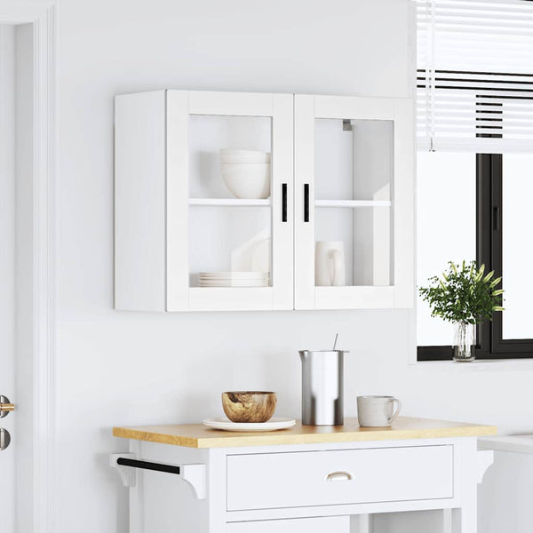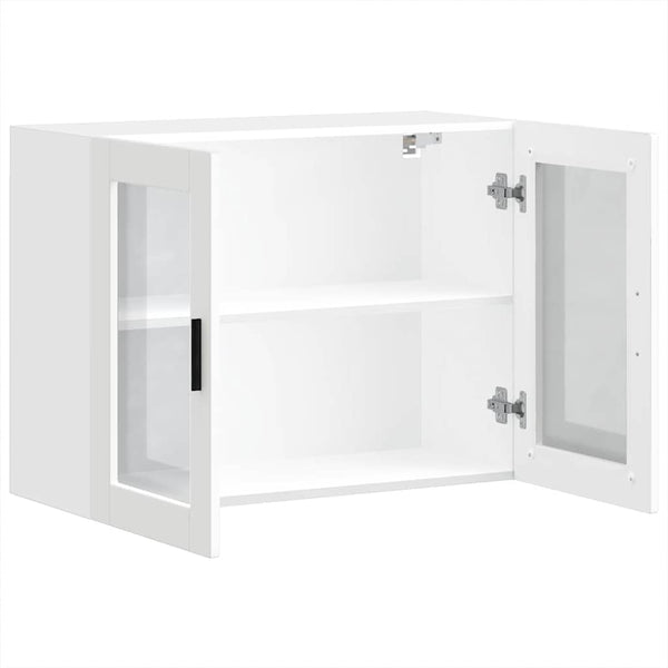 Valkoinen keittiön seinäkaappi lasiovella porto