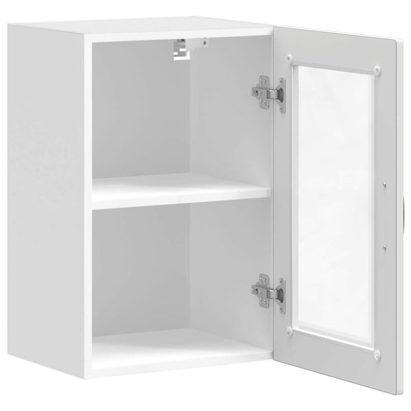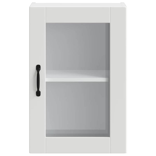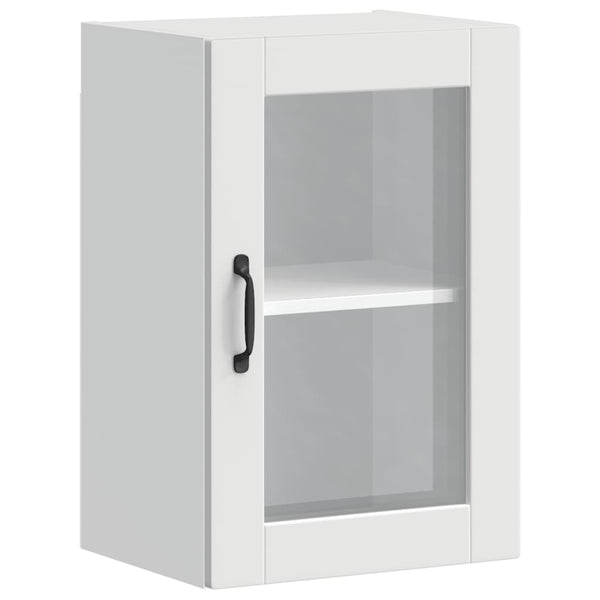Valkoinen keittiön seinäkaappi lasiovella porto