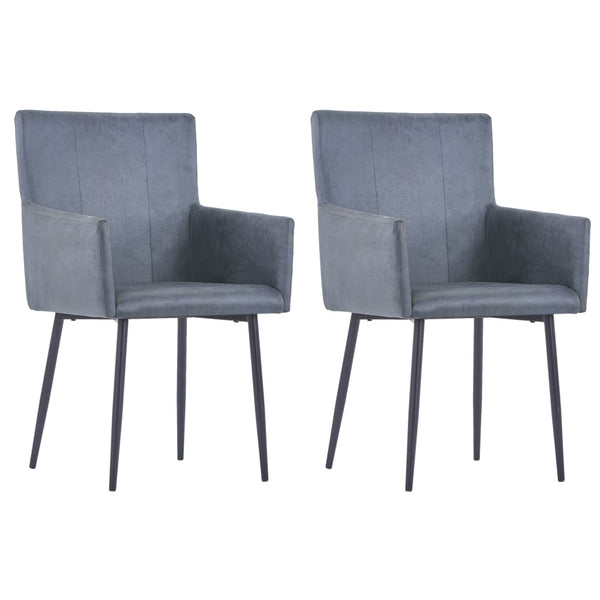 Harmaa ruokapöydän tuolit käsinojilla 2 kpl keinomokkanahka