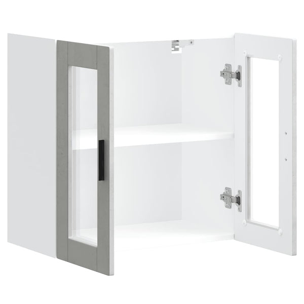 Betoniharmaa keittiön seinäkaappi lasiovella porto