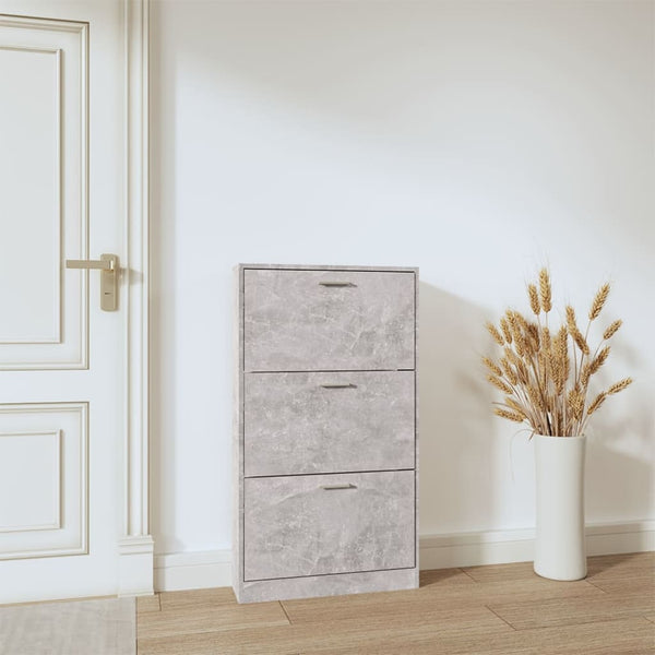Betoninharmaa kenkäkaappi 59x17x108cm puinen